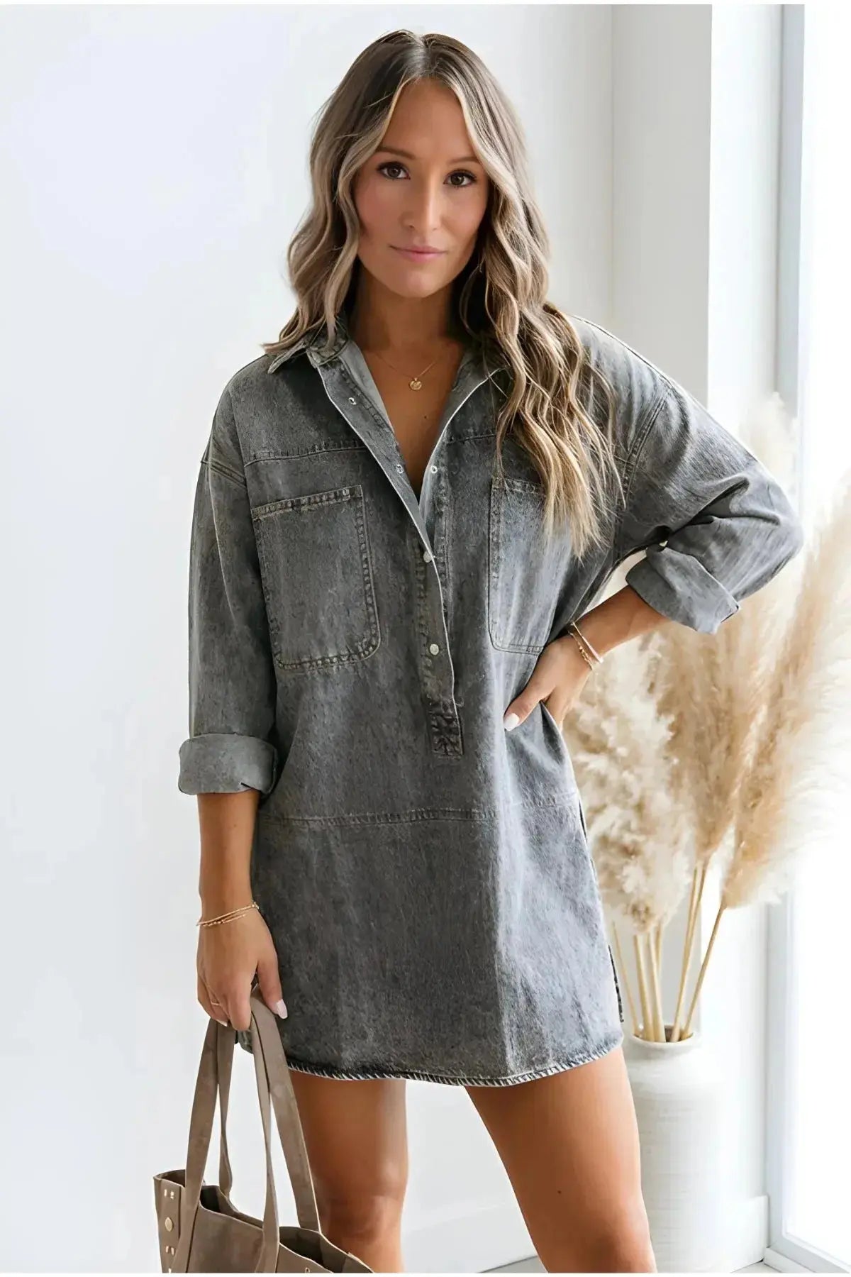 MINI LONG SLEEVE DENIM DRESS