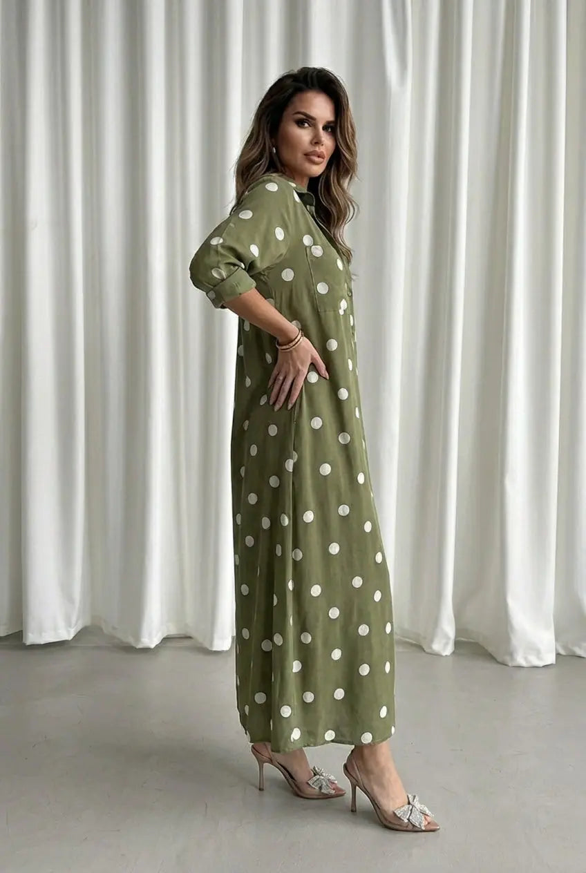 Tailored Dot Button-Front Blouse - SandSet