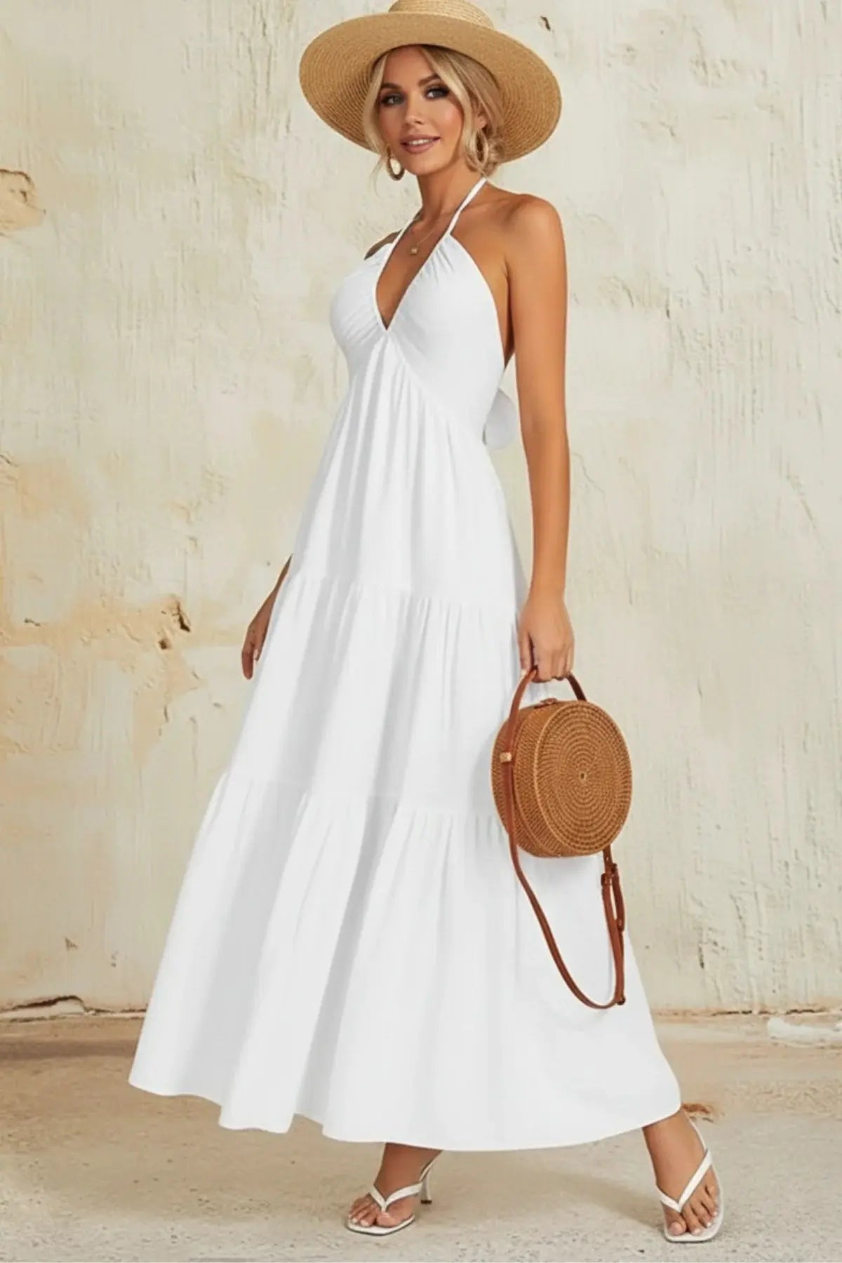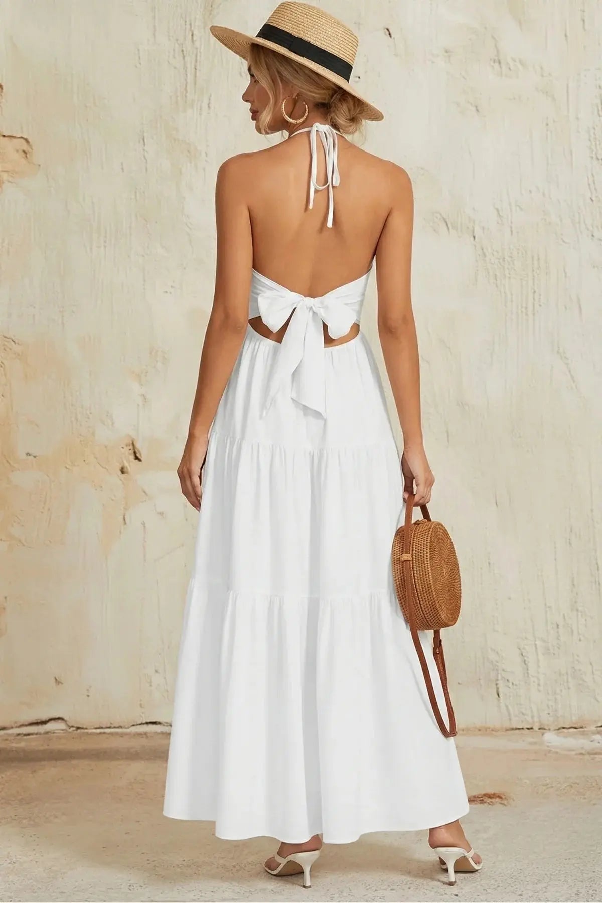 Elegant Backless Halter Flowy Maxi Dress - SandSet