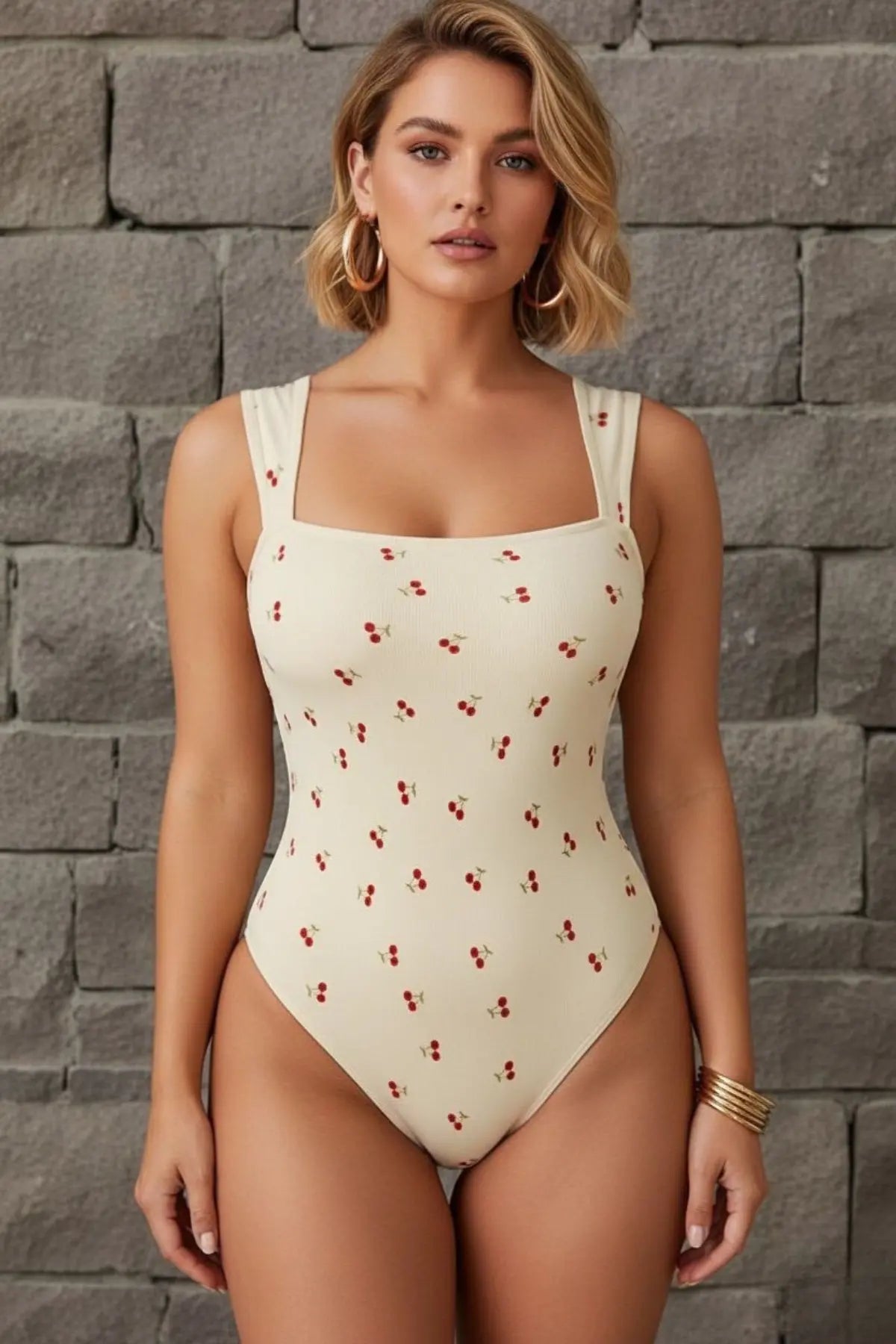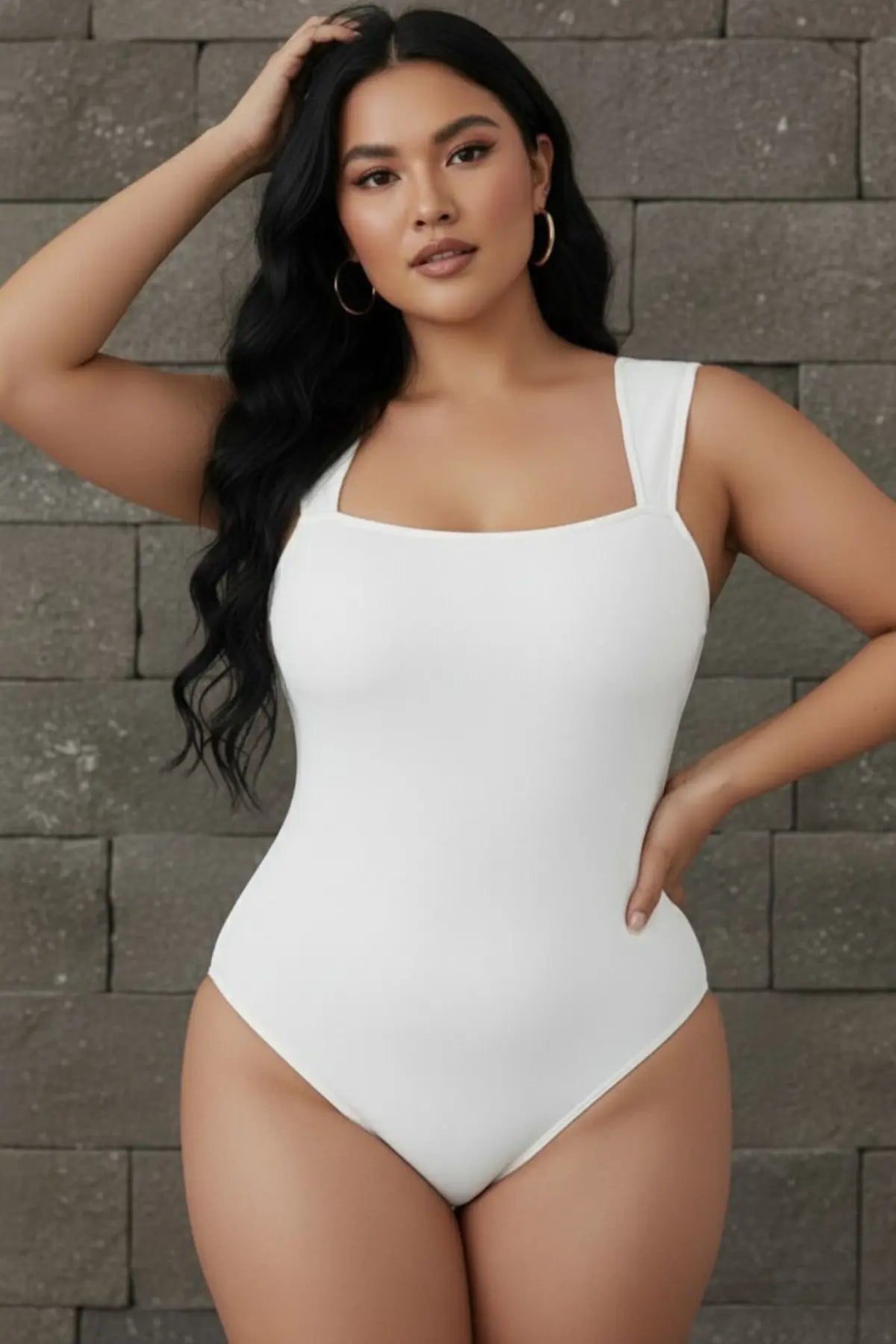 Premium Ribbed Square-Neck Sleek Bodysuit - SandSet