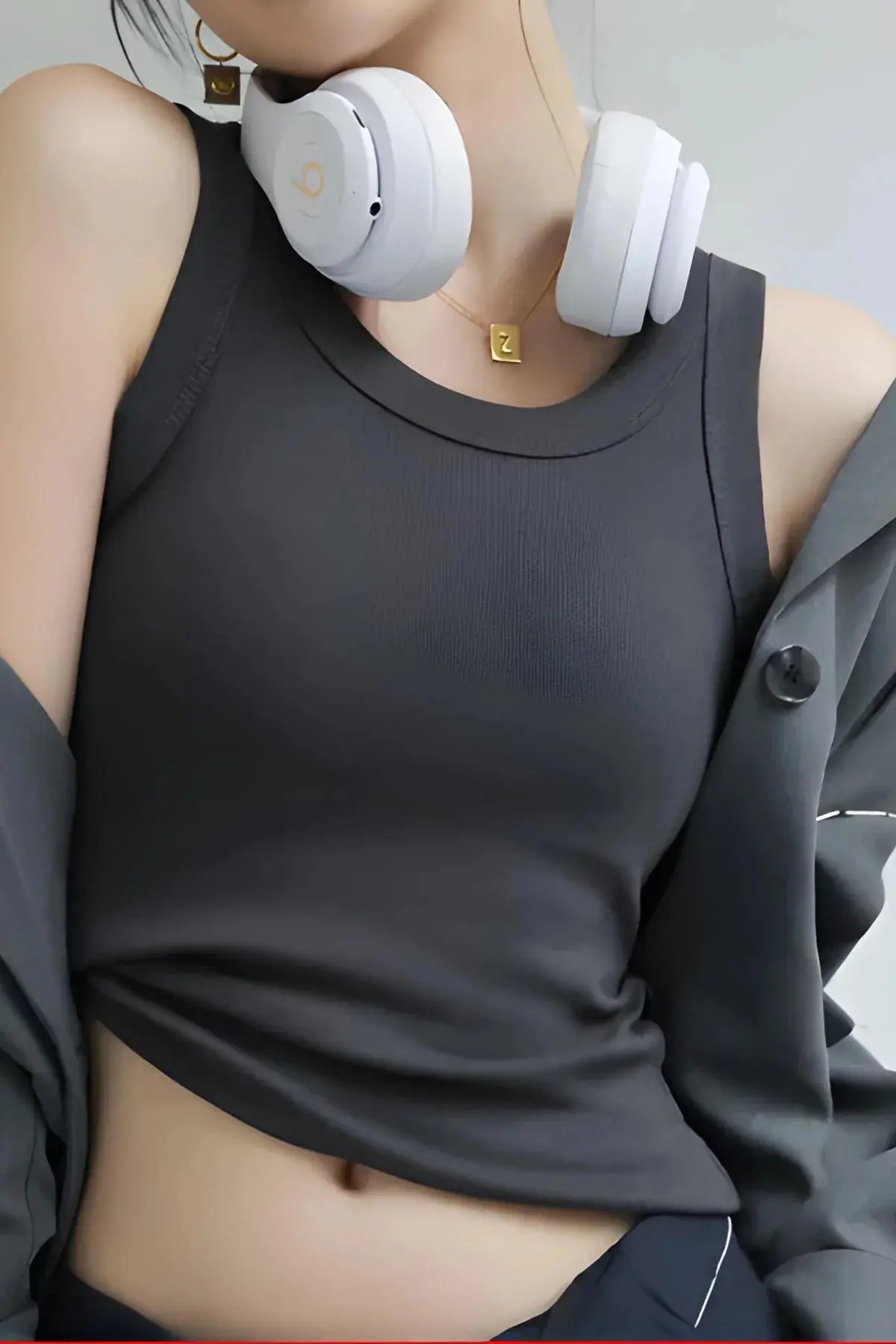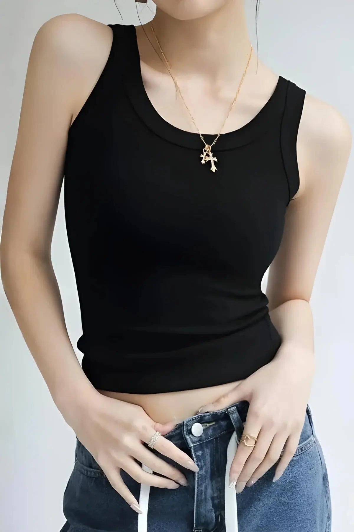 Round Neck Built in Bra Ribbed Tank Top