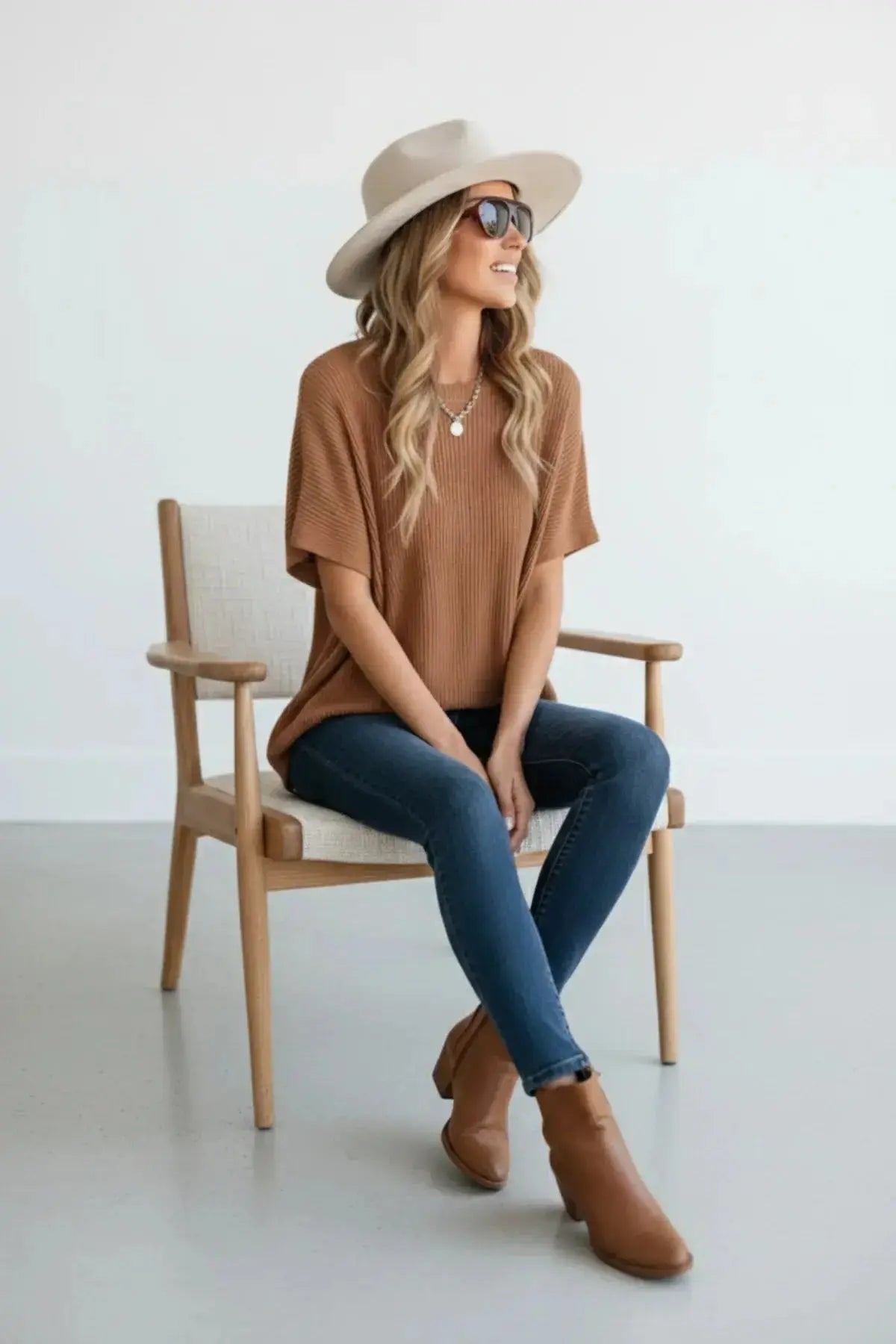 Casual Loose Fit Short Sleeve Knit Blouse - SandSet