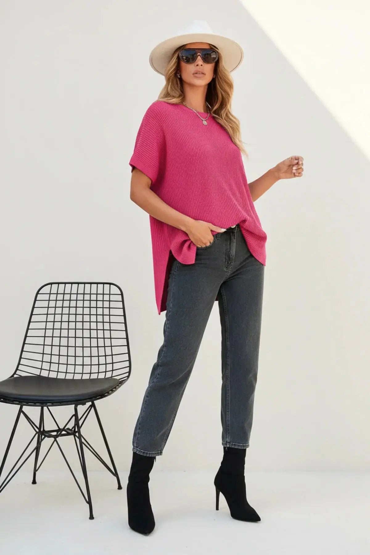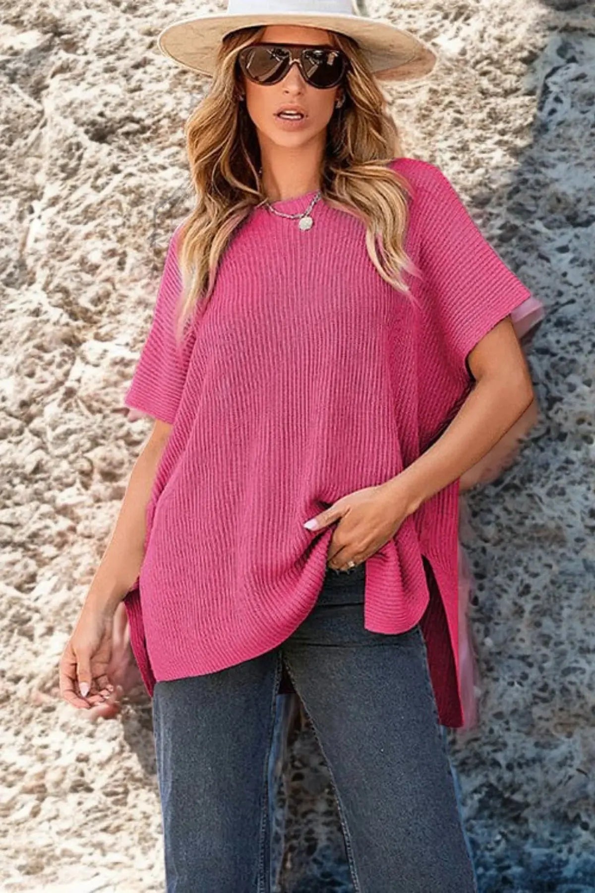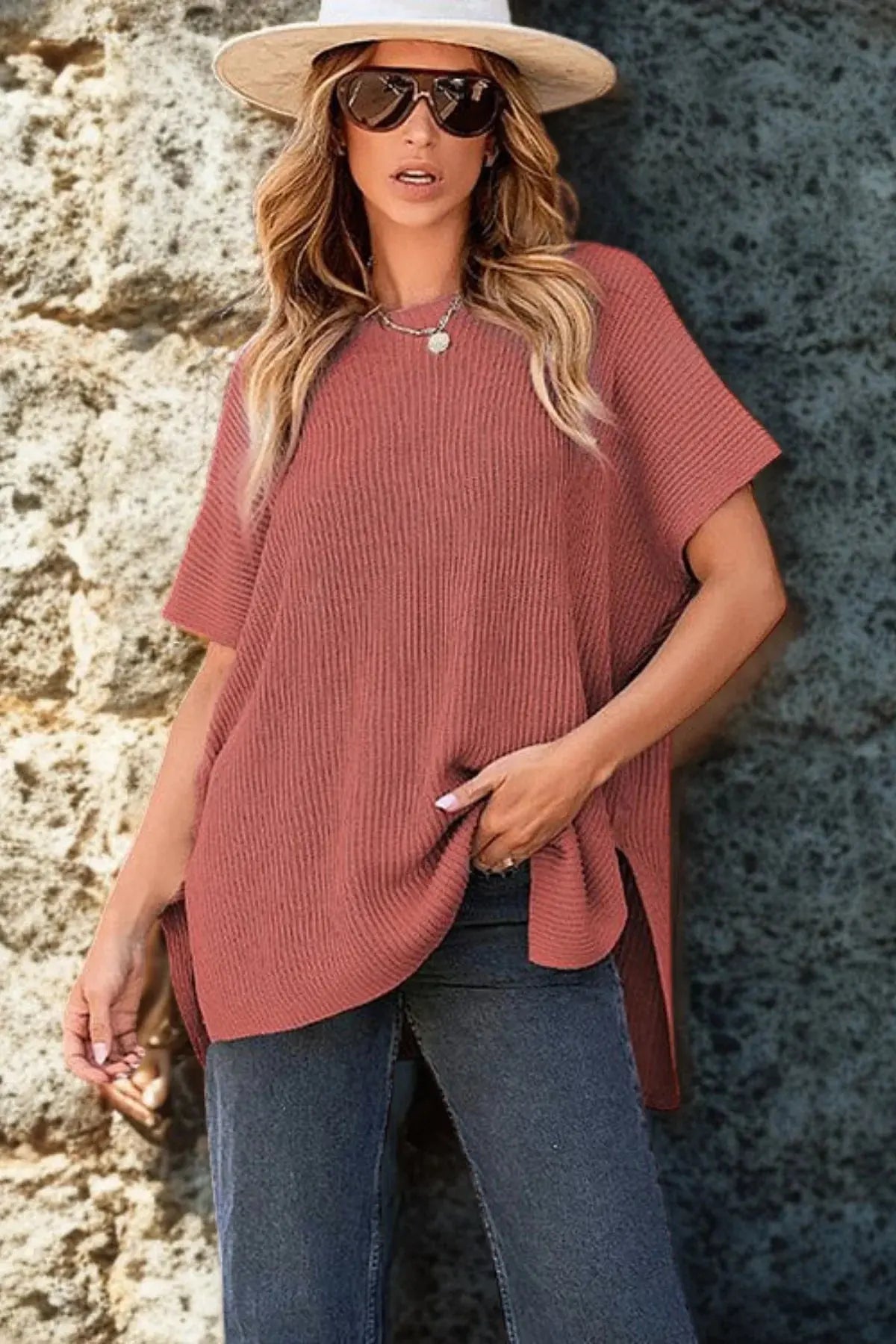 Casual Loose Fit Short Sleeve Knit Blouse