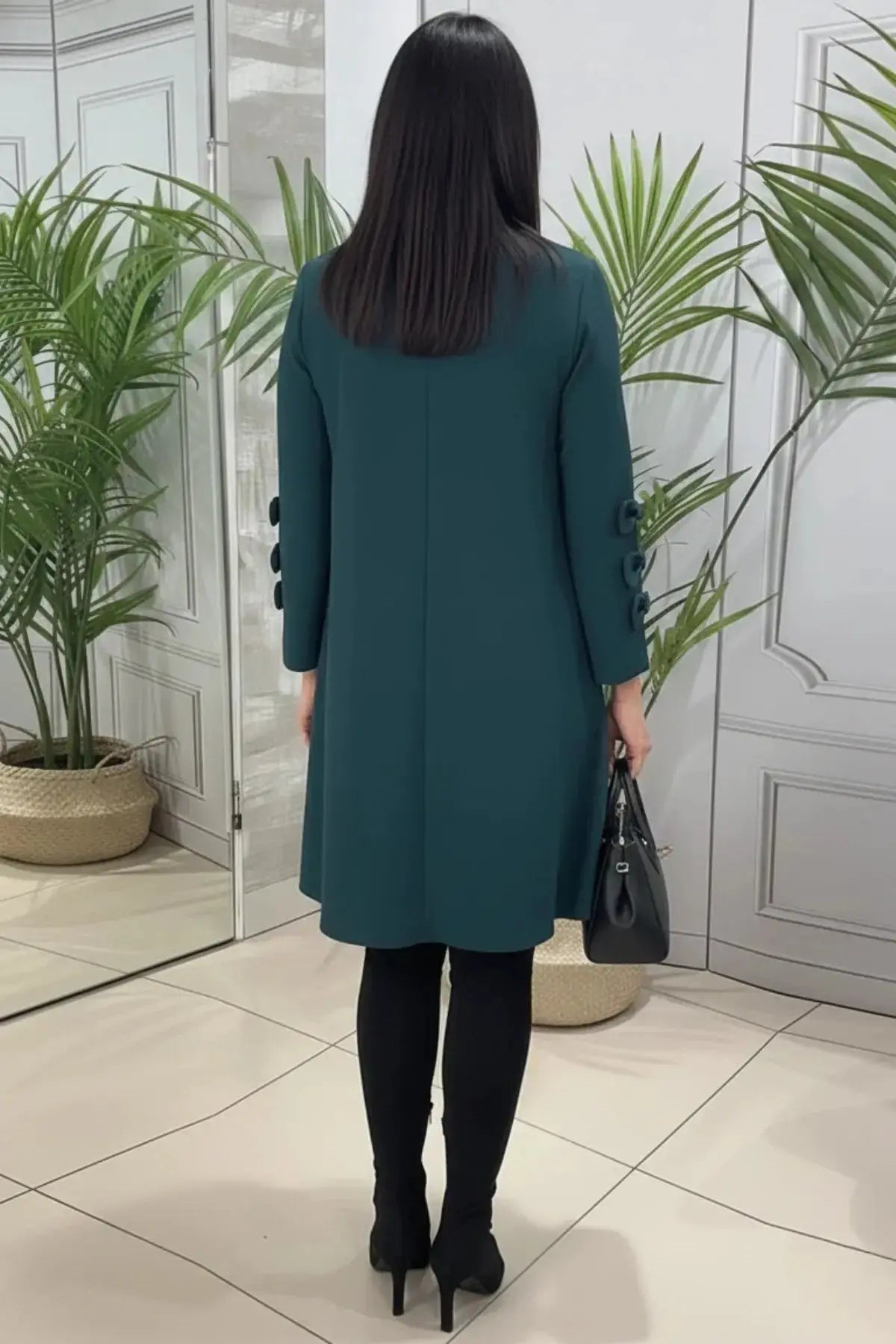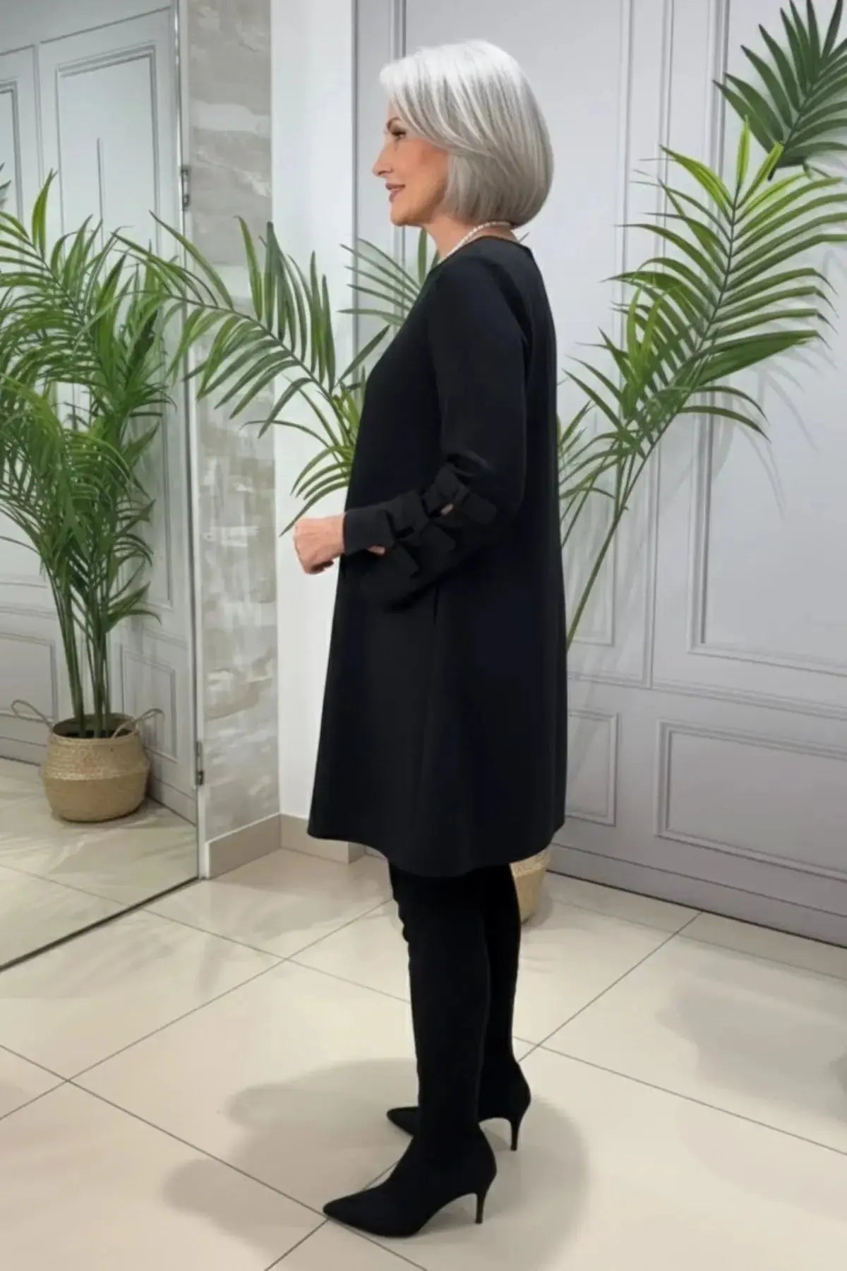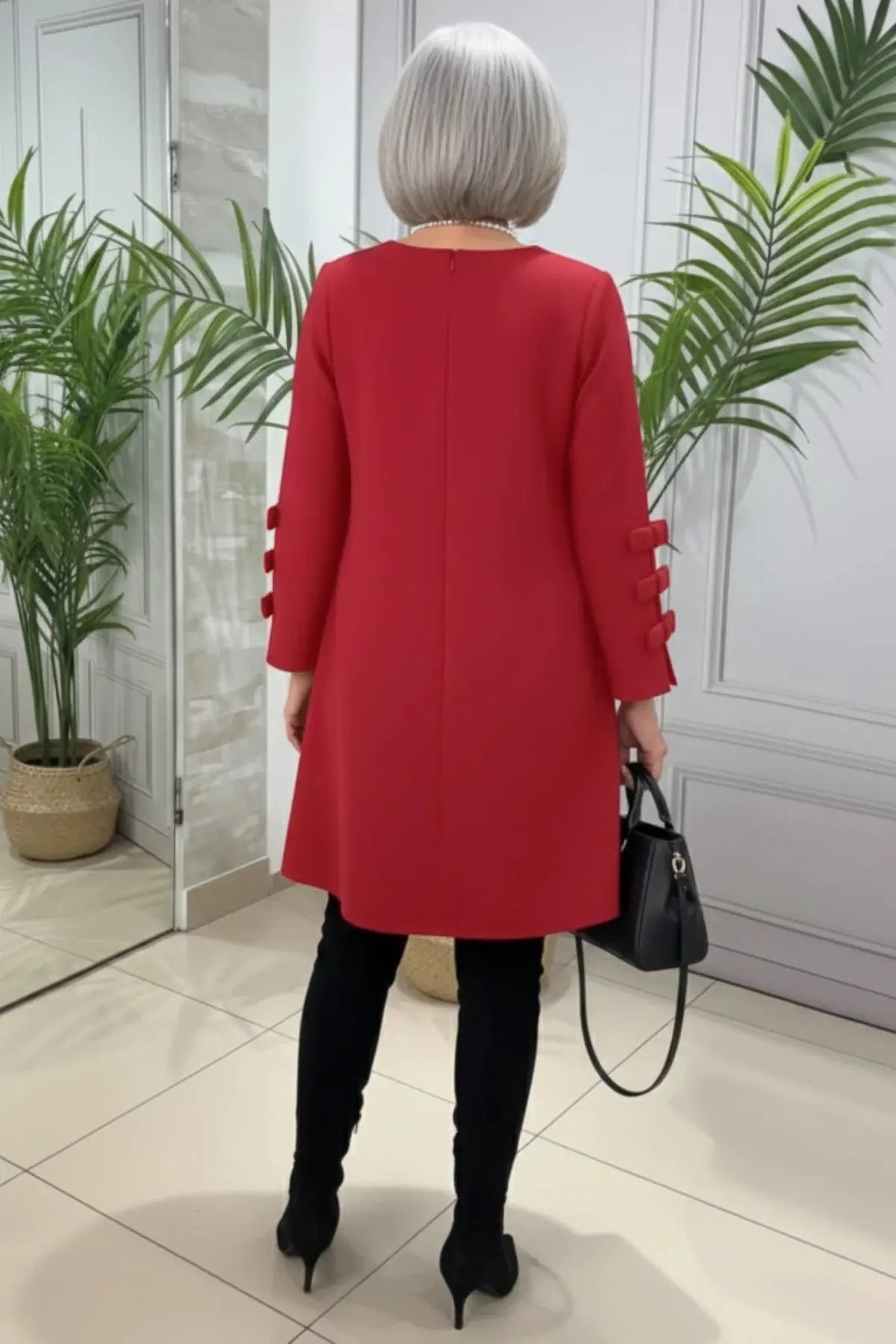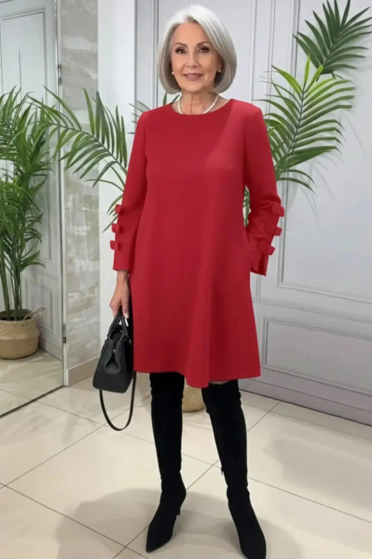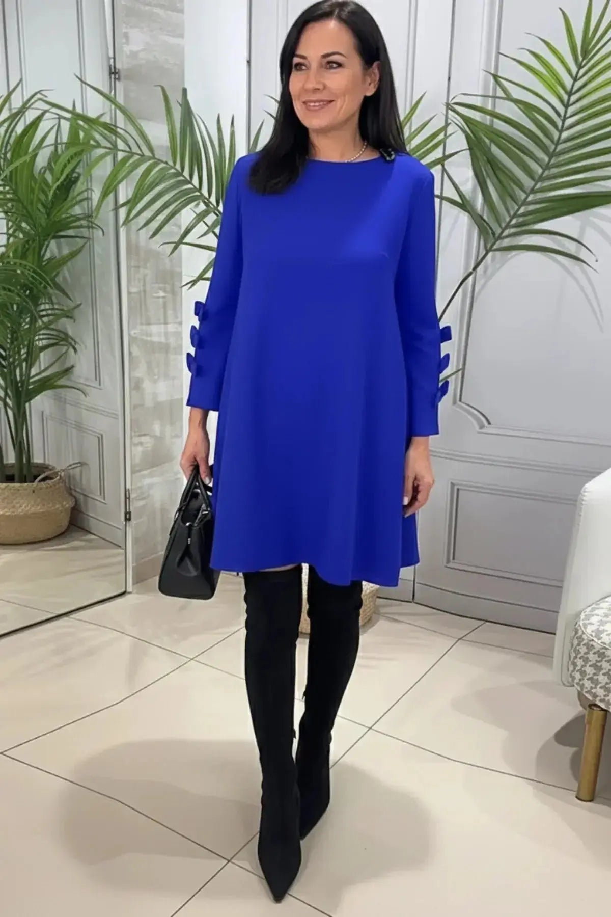 Long-Sleeve Knee-Length Casual Shift Dress