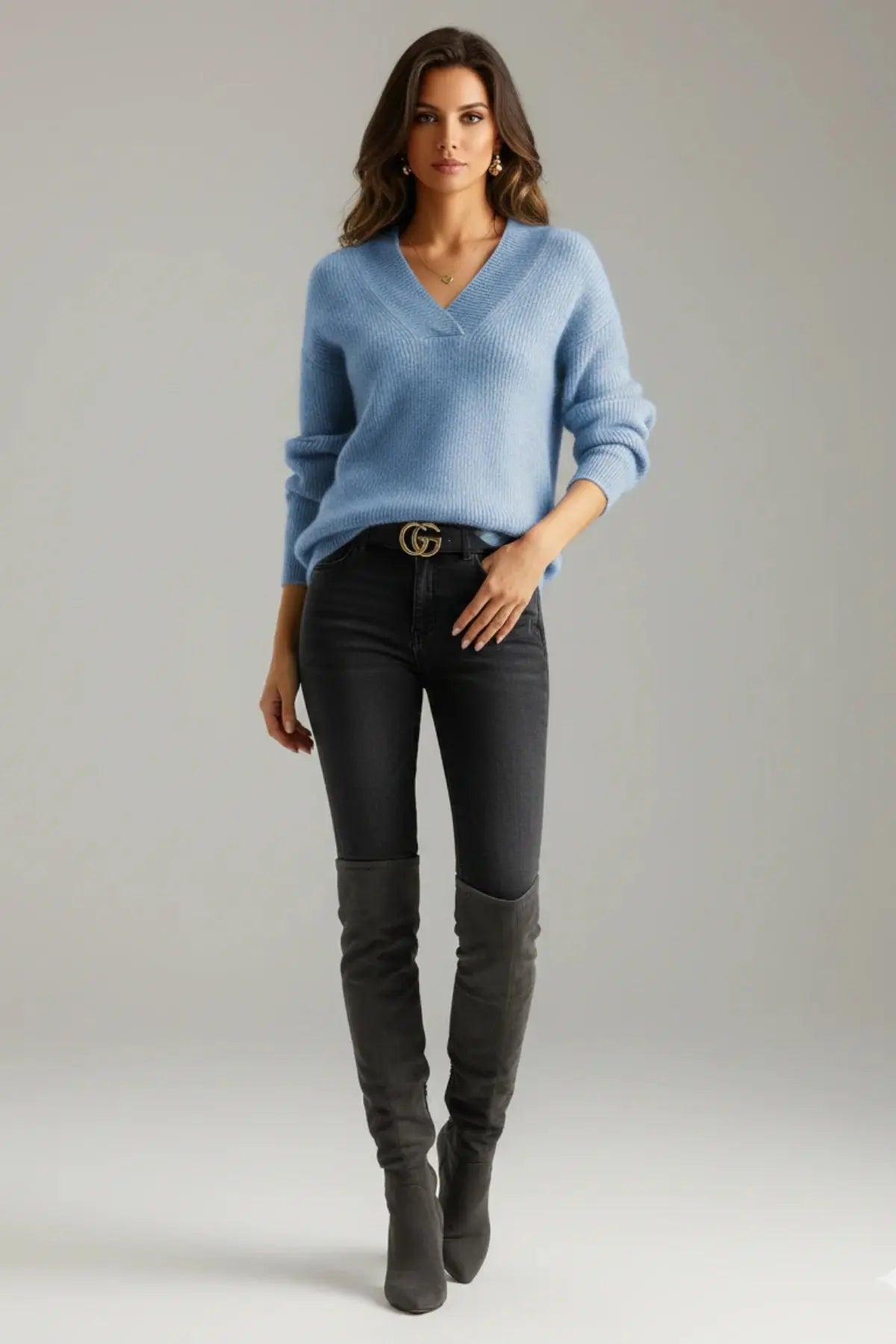 Premium Wool-Blend V-Neck Knitted Pullover