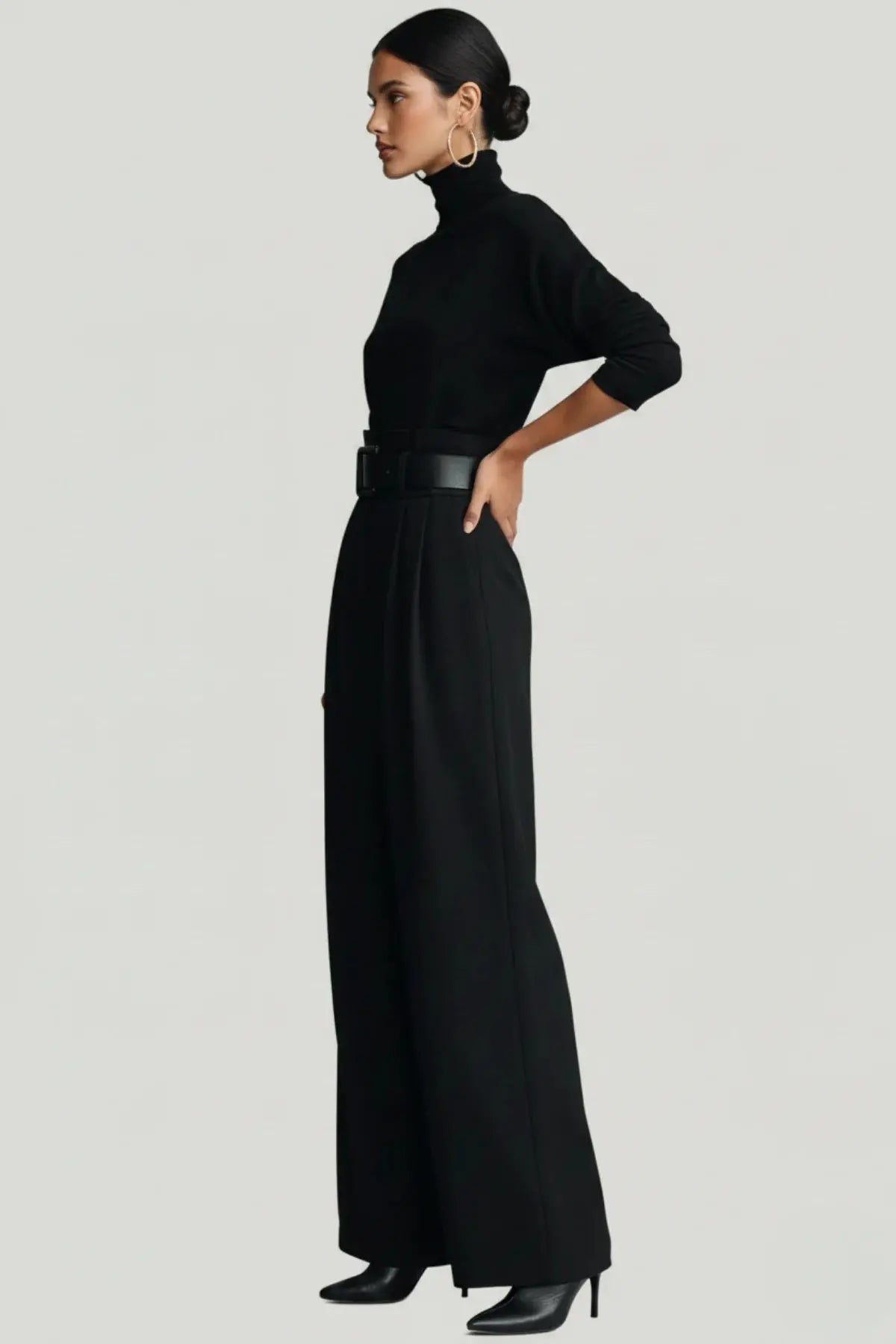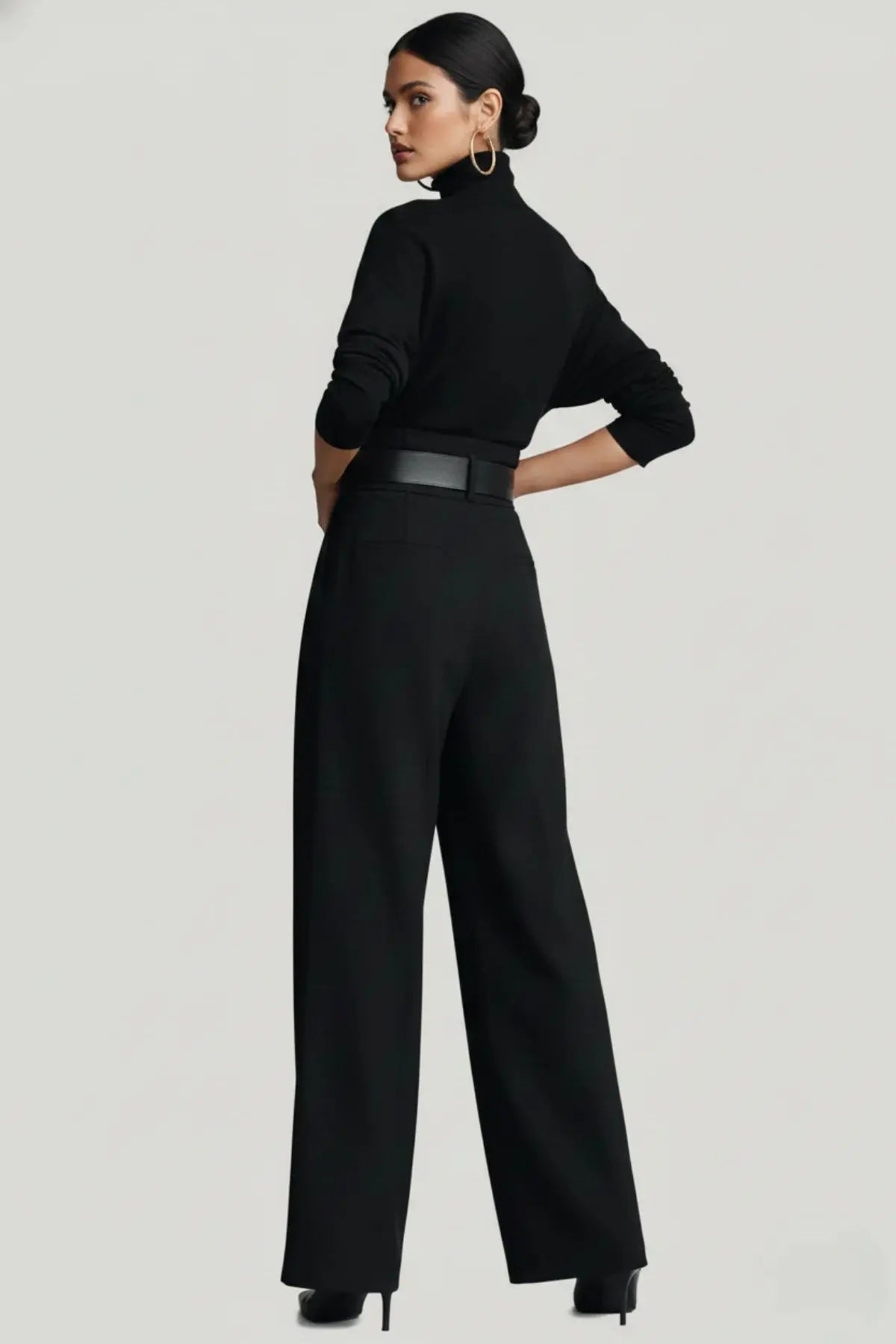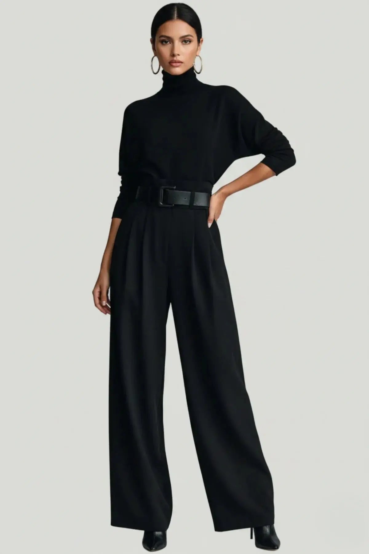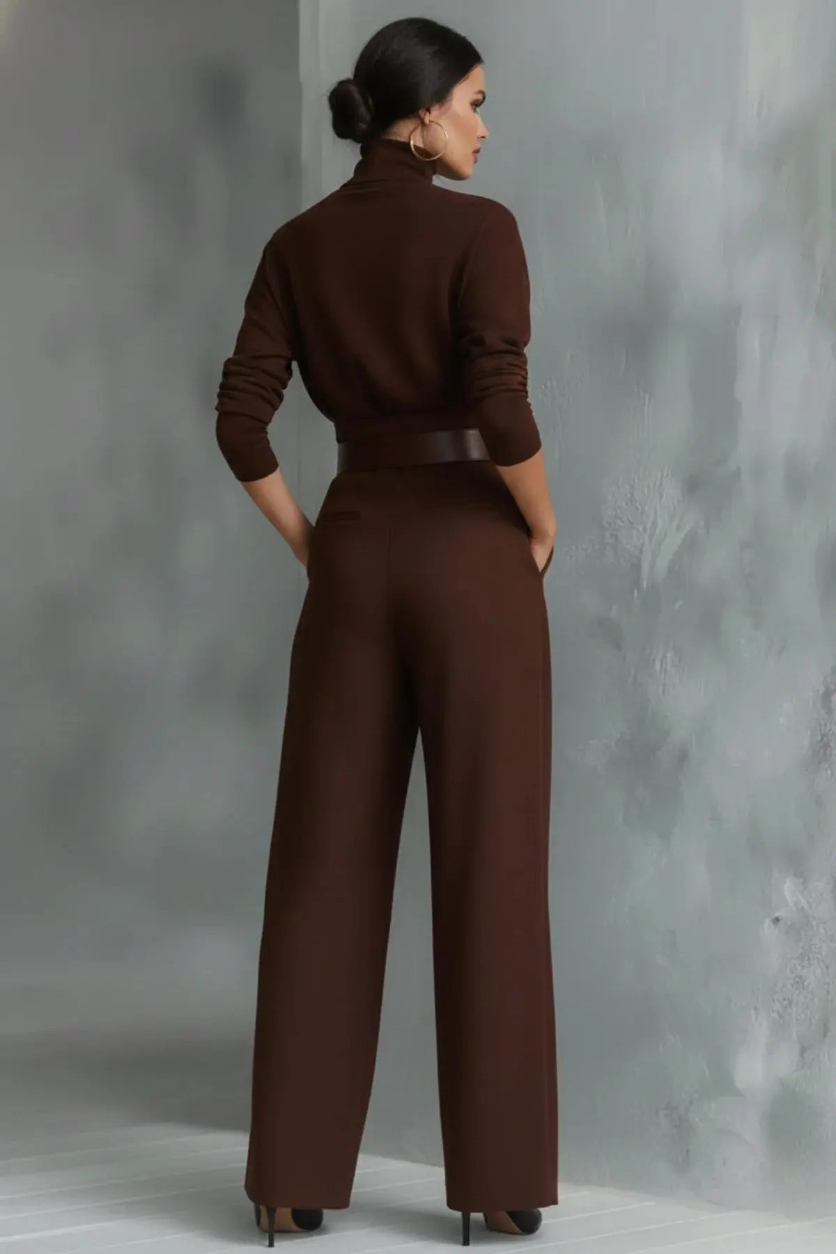 Ribbed Turtleneck & Straight-Leg Knit Ensemble