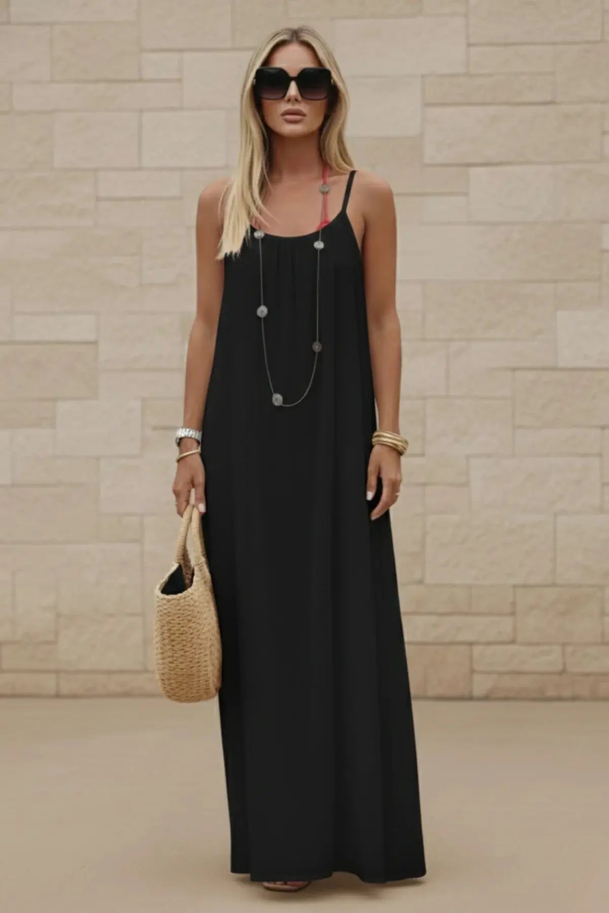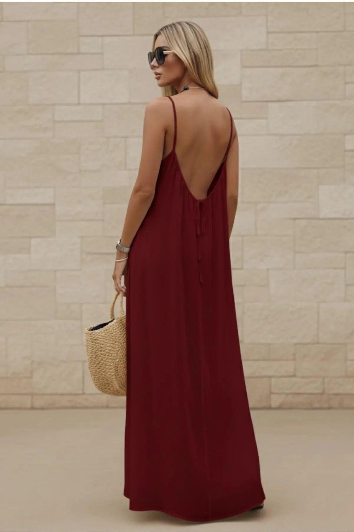 Women’s Stylish Backless Square-Neck Cami Midi Dress