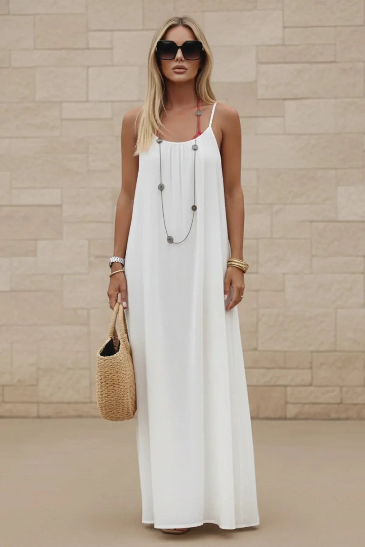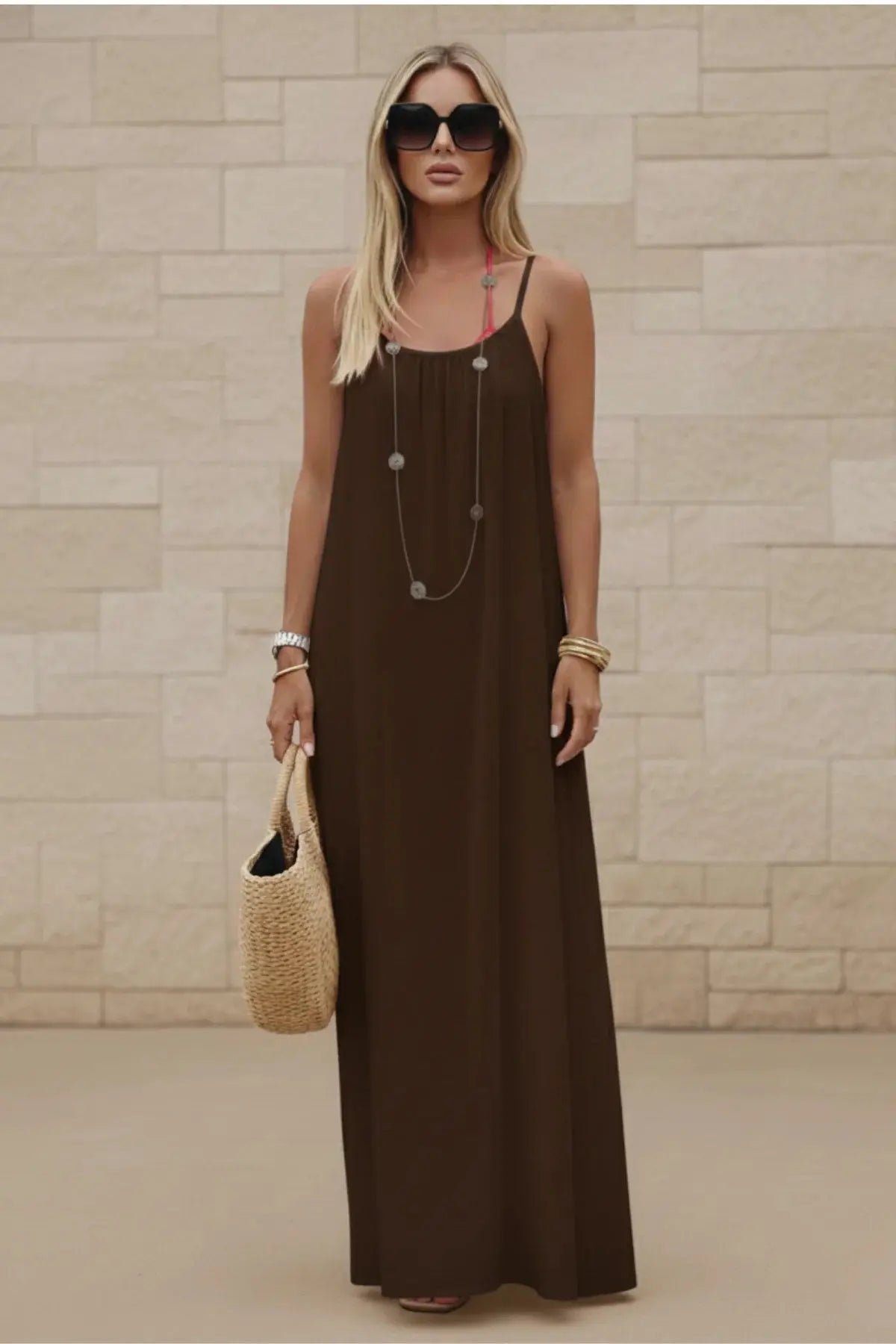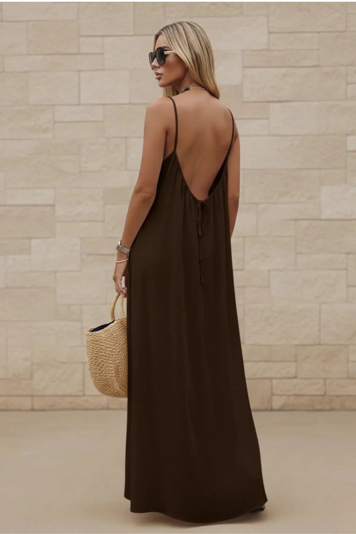 Women’s Stylish Backless Square-Neck Cami Midi Dress - SandSet